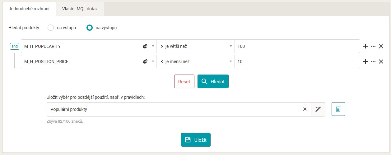 Podmínky pro označení produktu jako „populární“ a „cenově konkurenceschopný“ si klient nastavil podle vlastních kritérií – každý uživatel METRIXANA si je může přizpůsobit podle svých potřeb. Podobně to funguje i opačně – produkty, které nejsou mezi zákazníky oblíbené nebo nejsou cenově konkurenceschopné, se do kampaní zbytečně nezařazují.